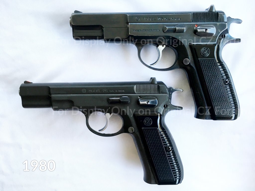 نخستین نمونههای تولیدی که از آنها با عنوان CZ-75 “First Model” یا “Short Rail” یاد میشود، بین سالهای ۱۹۷۵ تا ۱۹۸۰ ساخته شدند. این نسخهها دارای ریلهای کوتاهتر ، بدنهای فولادی و ماشهای ساده بدون حالت نیمکشیده (نیمکُک) بودند. پس از آن، نسخهی دوم یا CZ-75 “Pre-B” از سال ۱۹۸۰ تا اوایل دههی ۹۰ میلادی تولید شد. در این مدل، ریلهای اسلاید بلندتر شدند، بدنه از روش ریختهگری تولید گردید و قابلیت نیمکُک برای چکش ضربه زن اضافه شد.